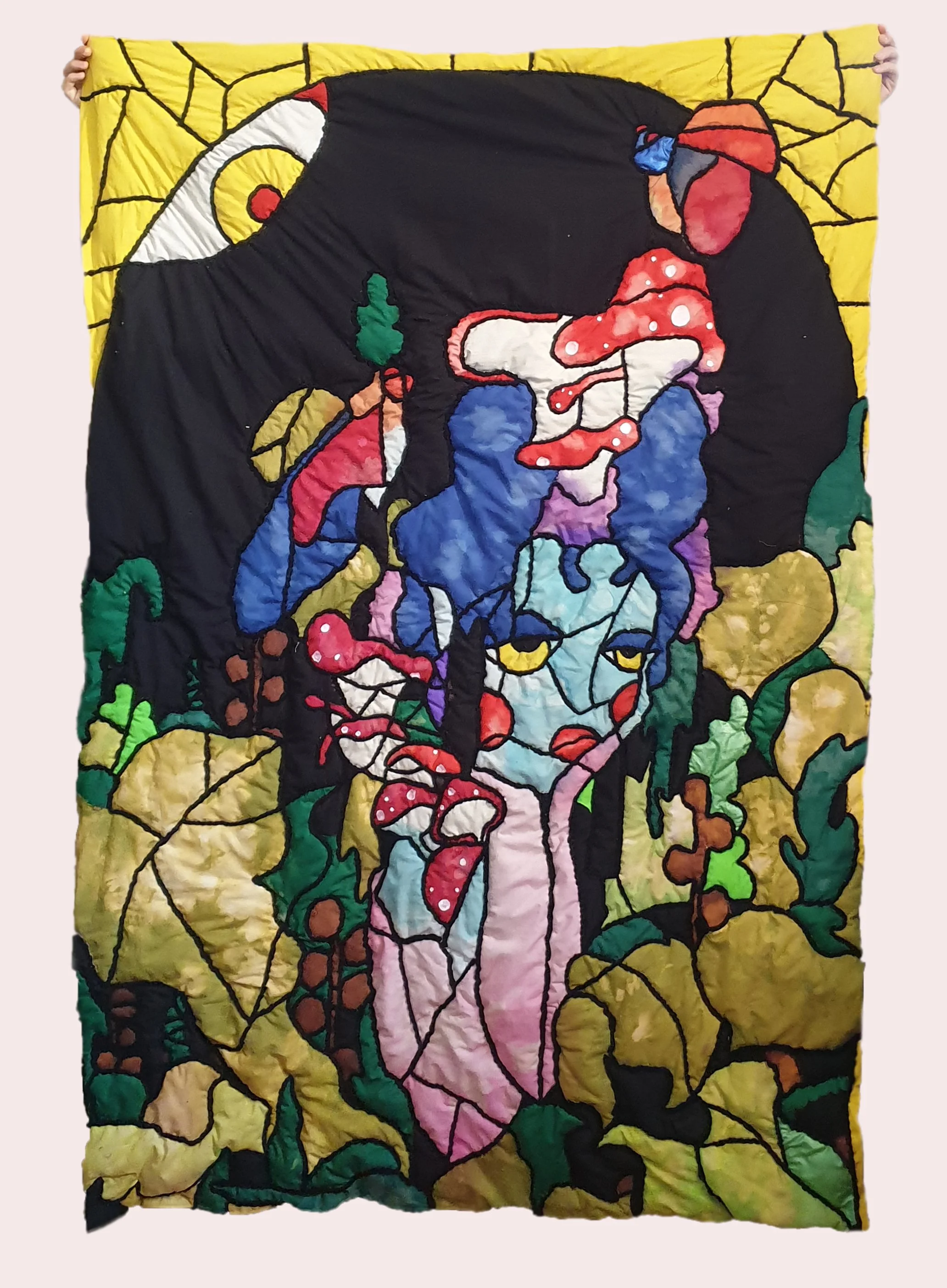 Crochet using a painting as a reference 2023 Watch process video here “ Walk In The Wood” is a quilt inspired by one of the artist’s paintings .2024